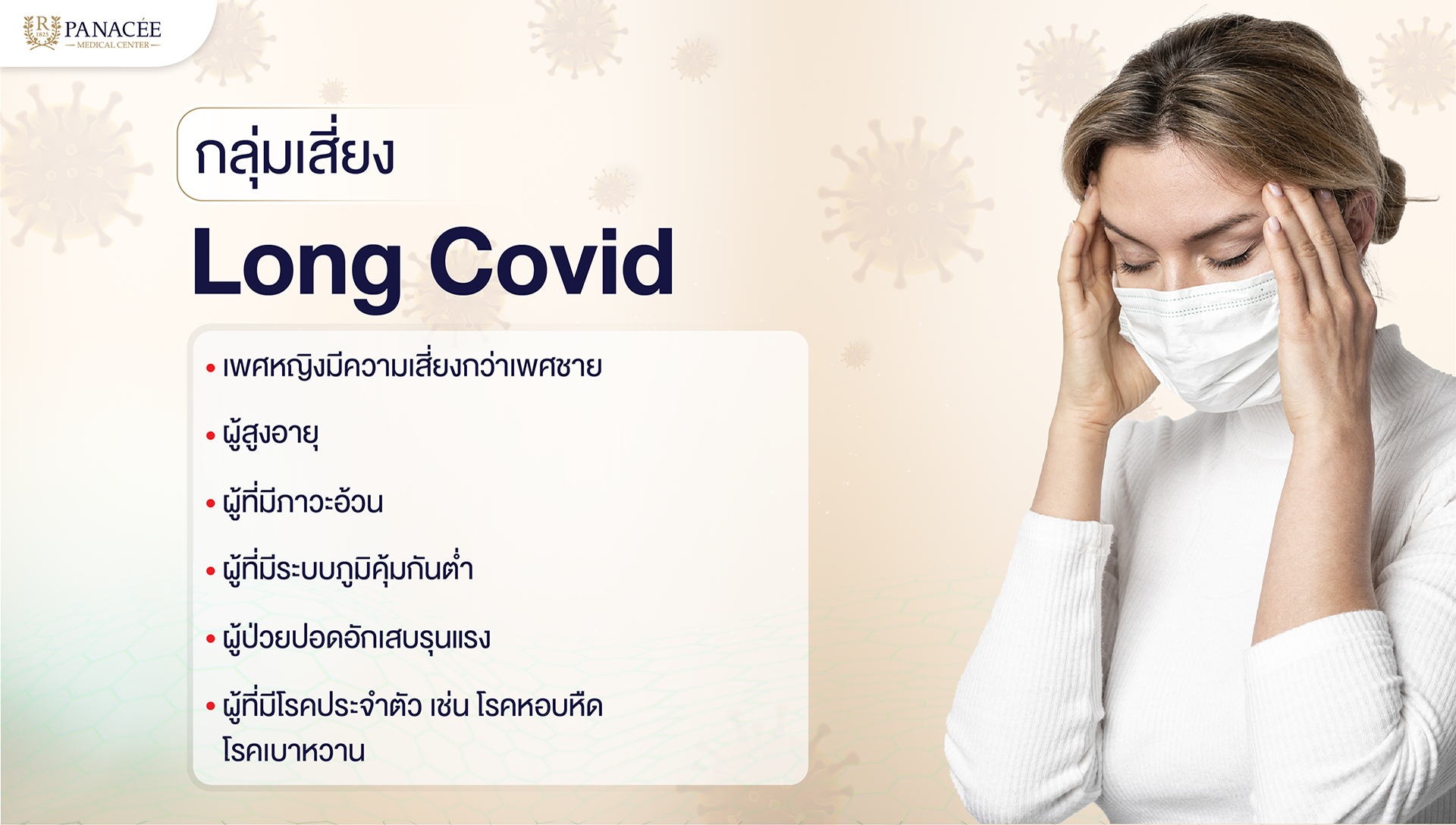 ในกลุ่มผู้ป่วยที่ผู้ป่วยที่ติดเชื้อแบบไม่แสดงอาการหรือไม่เข้าข่ายกลุ่มเสี่ยง ก็สามารถมีโอกาสที่จะเกิดอาการ Long COVID ได้เช่นกัน แม้ว่าจะไม่ได้อยู่ในกลุ่มเสี่ยง แต่ส่วนใหญ่มักจะพบในผู้ที่ไม่ได้รับวัคซีน แต่เราก็ไม่ควรประมาท และดูแลรักษาตัวเองให้ดี เพื่อบรรเทาและรักษาอาการ
